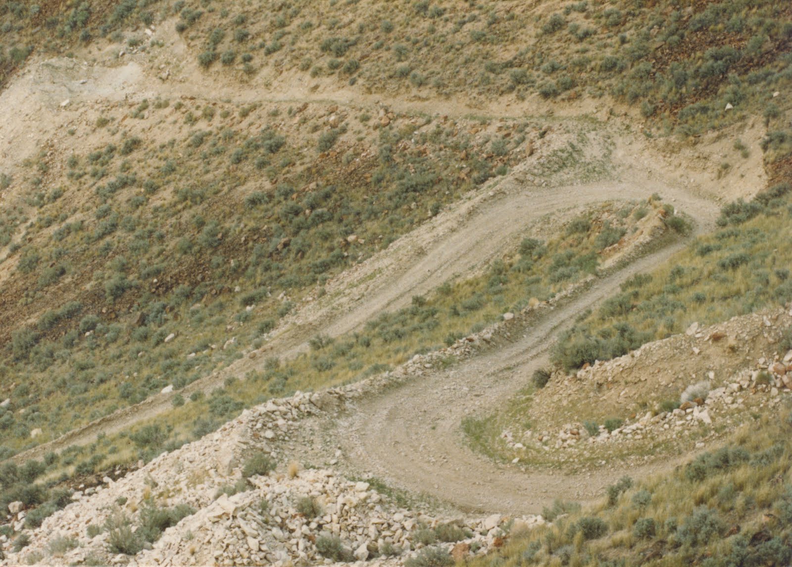 The following year I started working on the road myself with the D-4 dozer. It was a good thing I was ignorant and did not know what I was doing or I never would have done it. It took me two years working about one month each year to build a road barely passable with a four wheel drive vehicle down to the deposits on the Christine Marie claim. I followed the old dozer cut down the canyon creating switchbacks and lessening the steepness of the cut where possible. Once past the cliff, I constructed and entirely new road below the slide rather than follow the old route across it. Some days, because of the steepness of the terrain, limitations of the machine, and roughness of the road, only about 10 yards of road were completed.