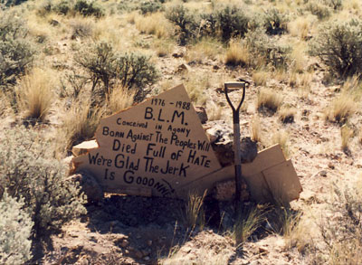 Follow this road to the corral where you come to a gate. Go through the gate, leaving it as you found it, and continue for another four miles generally going north. This is very rough unimproved road and you can actually walk the four miles faster thank you can drive it. There is one other fork in the road about 1 mile from the rim. Take the left fork staying on the left side of the lone tree on the horizon. This will get you to the canyon rim, 29 miles from Hwy95, overlooking Sheepshead Ridge and the two cabins below.