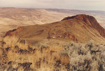 The road to get there starts out as Jordan Crater road and goes west to Highway 95 at M.P. 12 ½. This is 12 ½ miles south of where Hwy 95 crosses from Idaho into Oregon and about 6 miles north of Jordan Valley. This road was an improved gravel road for about 10 miles to the split in 1986. Today the road has been improved all the way to Jordan Crater and to the Owyhee River. At about 10 miles there is a fork in the road with the right fork continuing toward Jordan Craters and the left fork going to a ranch. In 1986 the road was unimproved from this point on and contained numerous mud holes, rocks, and other hazards. In 1986 the 29 mile trip from Hwy 95 to the canyon rim took about 3 hours. Today, it is considerably faster.