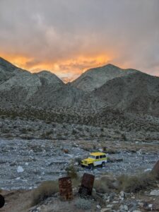 Reaching CA-190 as it crossed the Panamint Valley playa, we aired up the tires and put a final jerry can of fuel into the tank. Enough to get us all the way back to Las Vegas, we’d had one stop along the way.