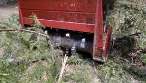 Think that roller is a sheep-foot roller for compacting roads and berms, as don't see a drive mechanism. It is similar looking to the tree grinders (attached photo) used for road clearing, but the teeth have more bite.
