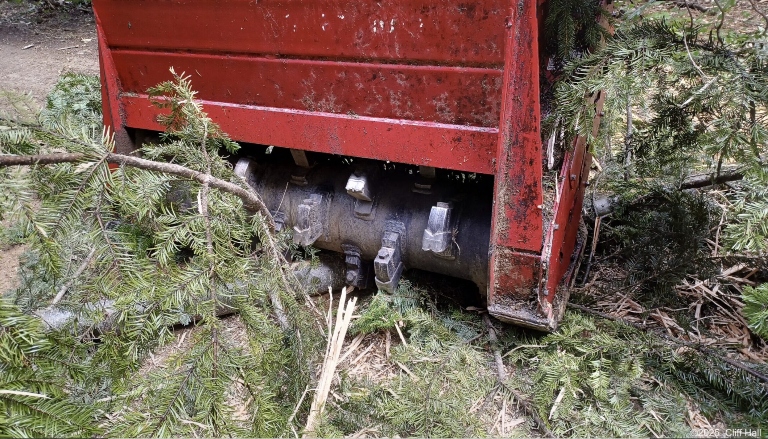 I reached the trailhead at 2:45pm and smiled as I spotted Aldo's little helper nestled into what had been a bypass around the blockage when we'd been here earlier in the summer. Hopping out to take a look, I realized that this thing was a beast, the front able to push monster trees out of the way, the back able to chew up terrain like nobody's business.